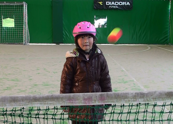 Eryna Ayako's first trial lesson with a foam ball on an indoor