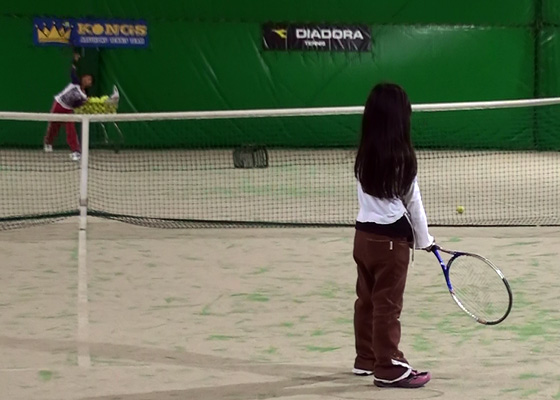 tennis court. Up to this time, she had only been hitting a balloon in the house
